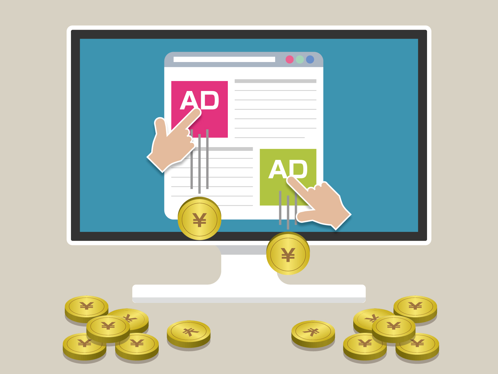 アドアフィリエイトは、広告を使用してアクセスを集め、その広告経由で購入やサービスの申し込みがあった場合に報酬を得るアフィリエイトの方法でしたよね。